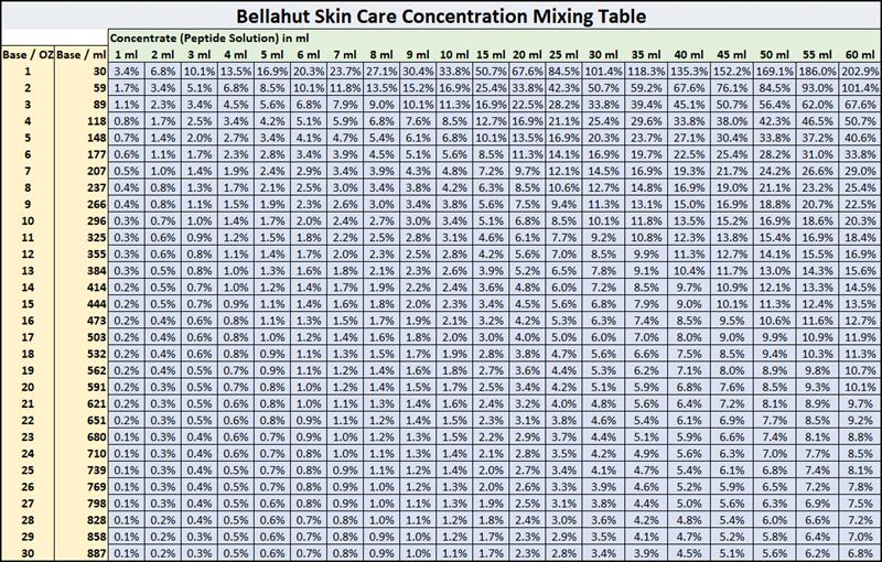 Mix with Bellahut's gel base or cream base and a combination of our other premium peptides to create your own custom treatment that is tailored to your needs. For best results use at a .5% to 15% concentration, keep in mind 15% is the maximum suggested concentration level for this product.